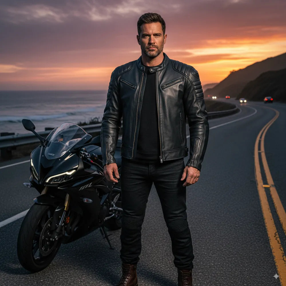 Men’s Winter Faux Fur Shearling Black Leather Jacket