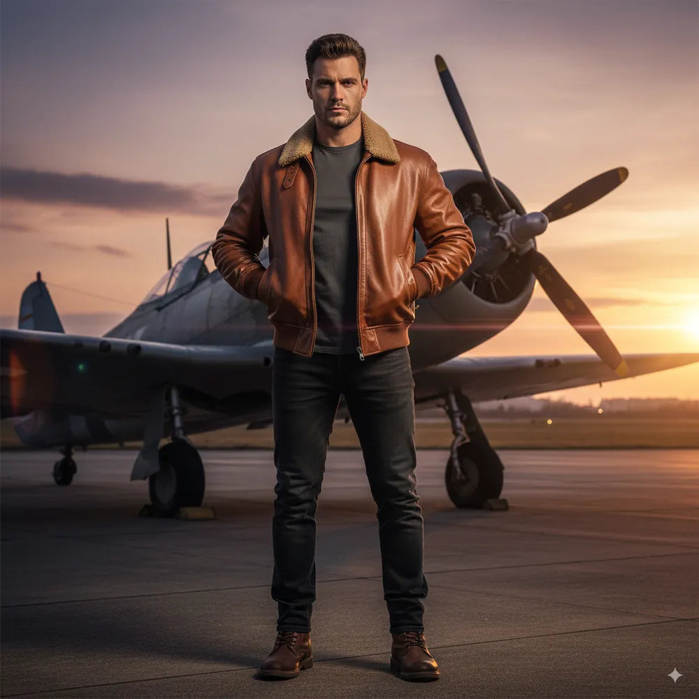 Men's Pilot Flying B3 Bomber Brown Air Force Aviator Fur Shearling Leather Jacket