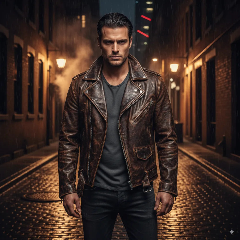 Men’s Brown Shearling Classic Biker Leather Jacket