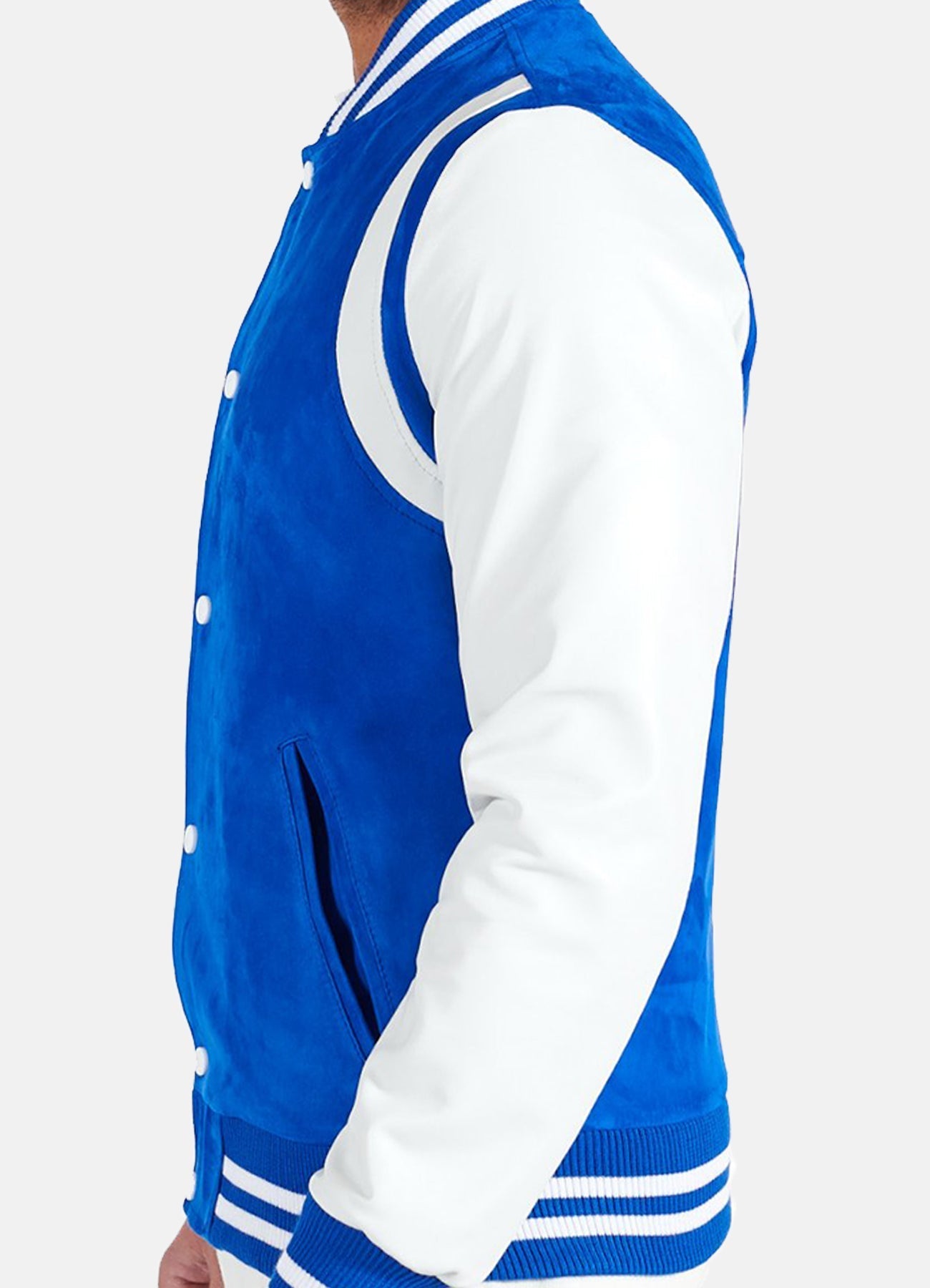 Mens Blue and White Varsity Jacket