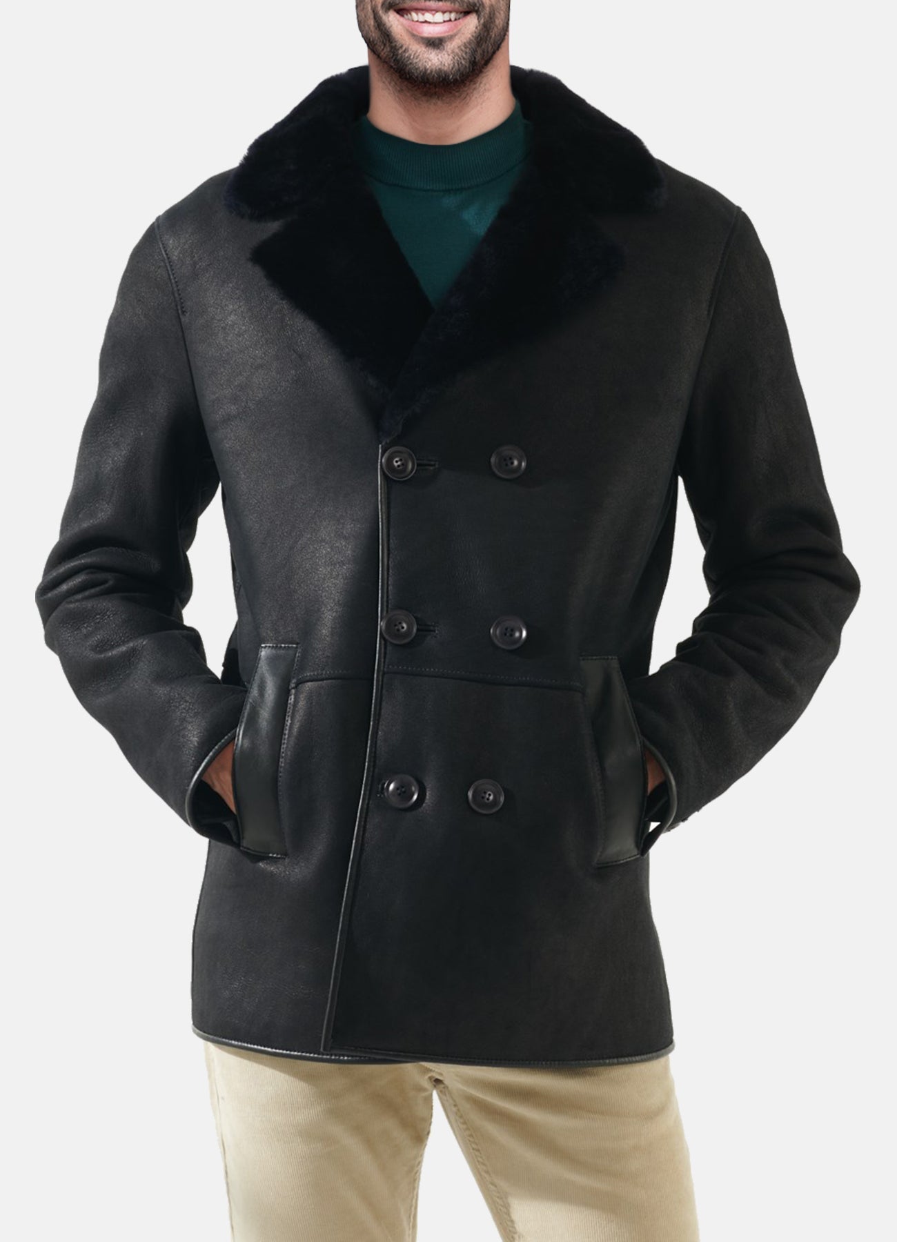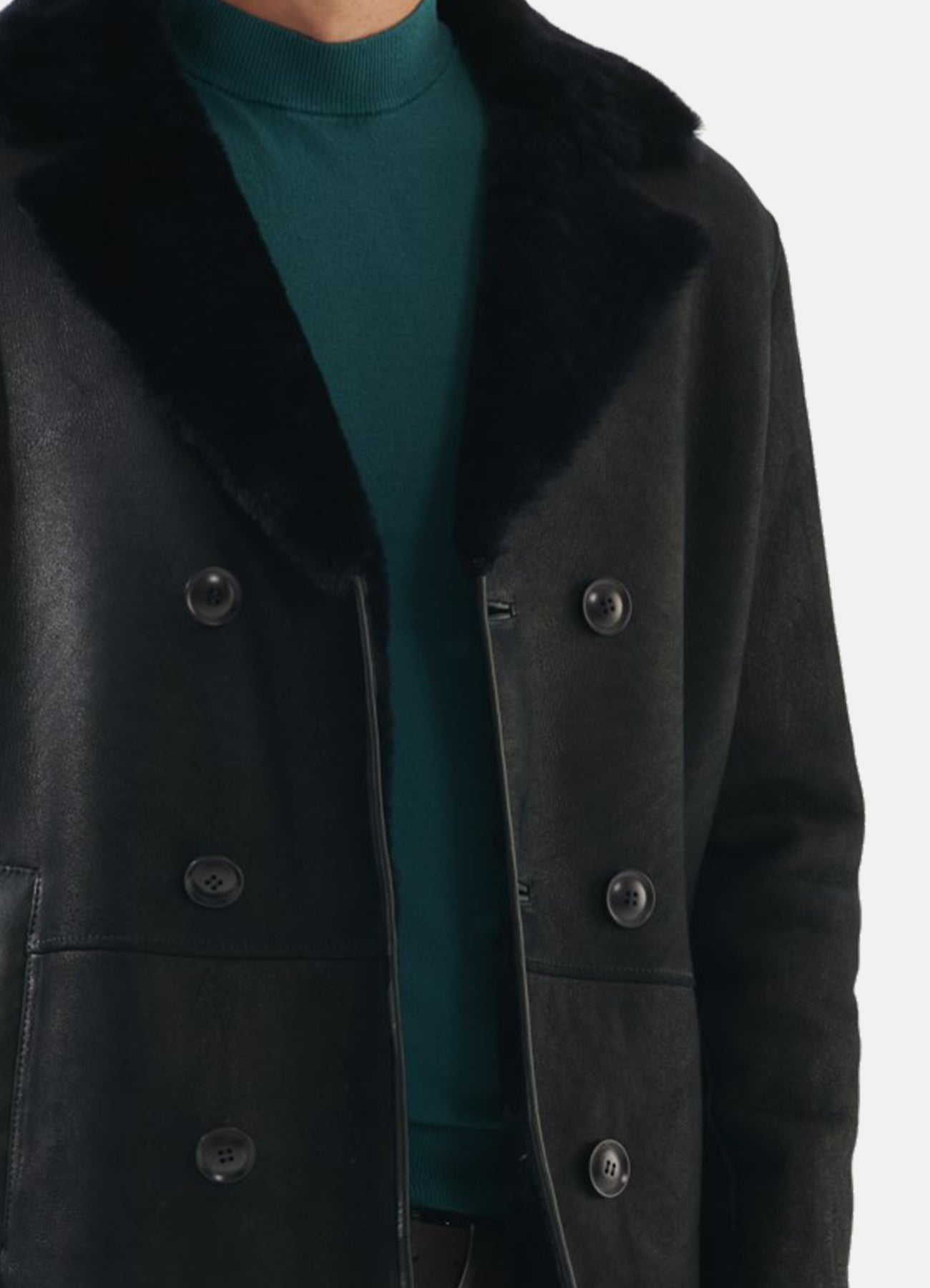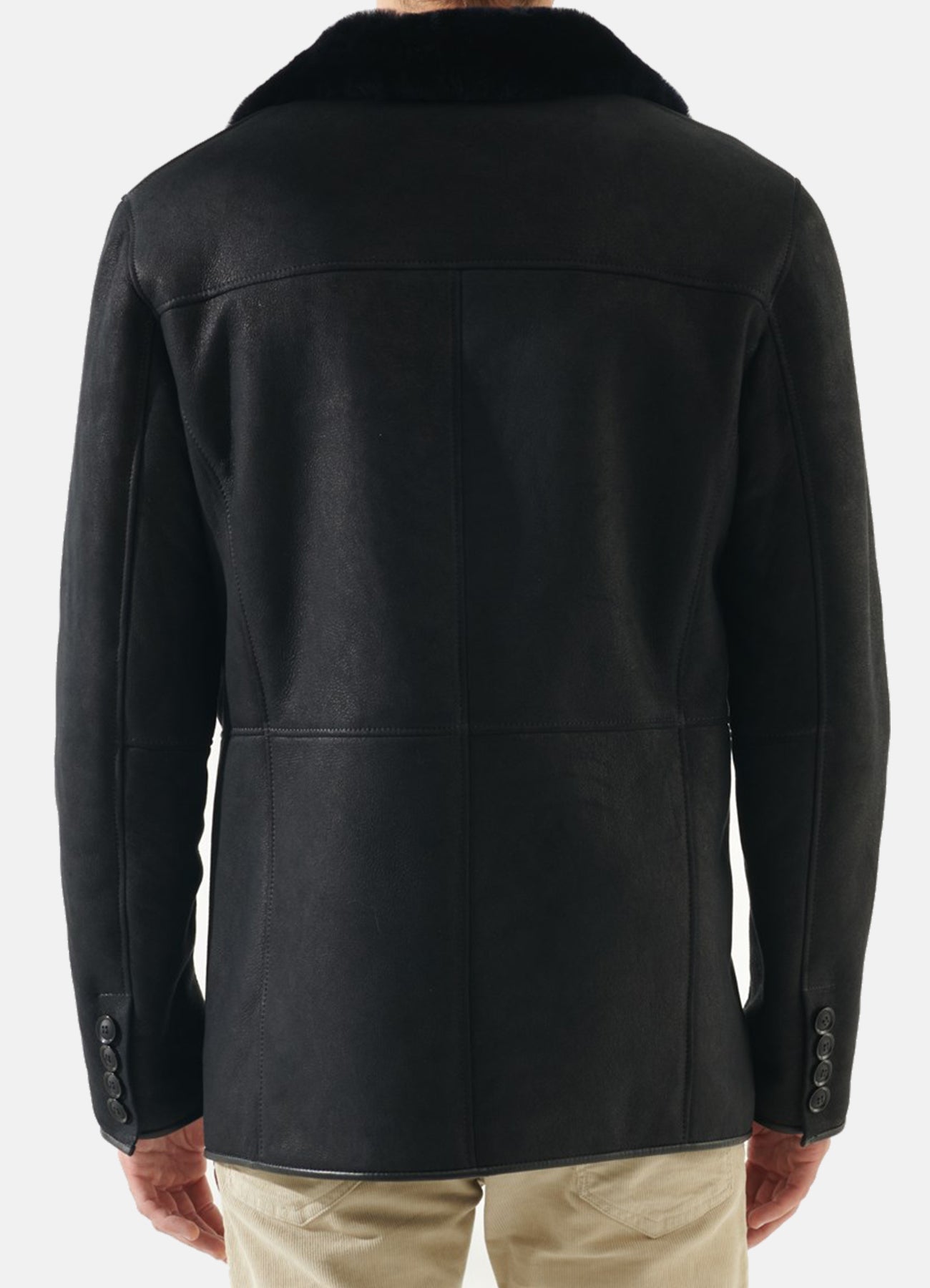 Mens Matt Black Shearling Leather Coat