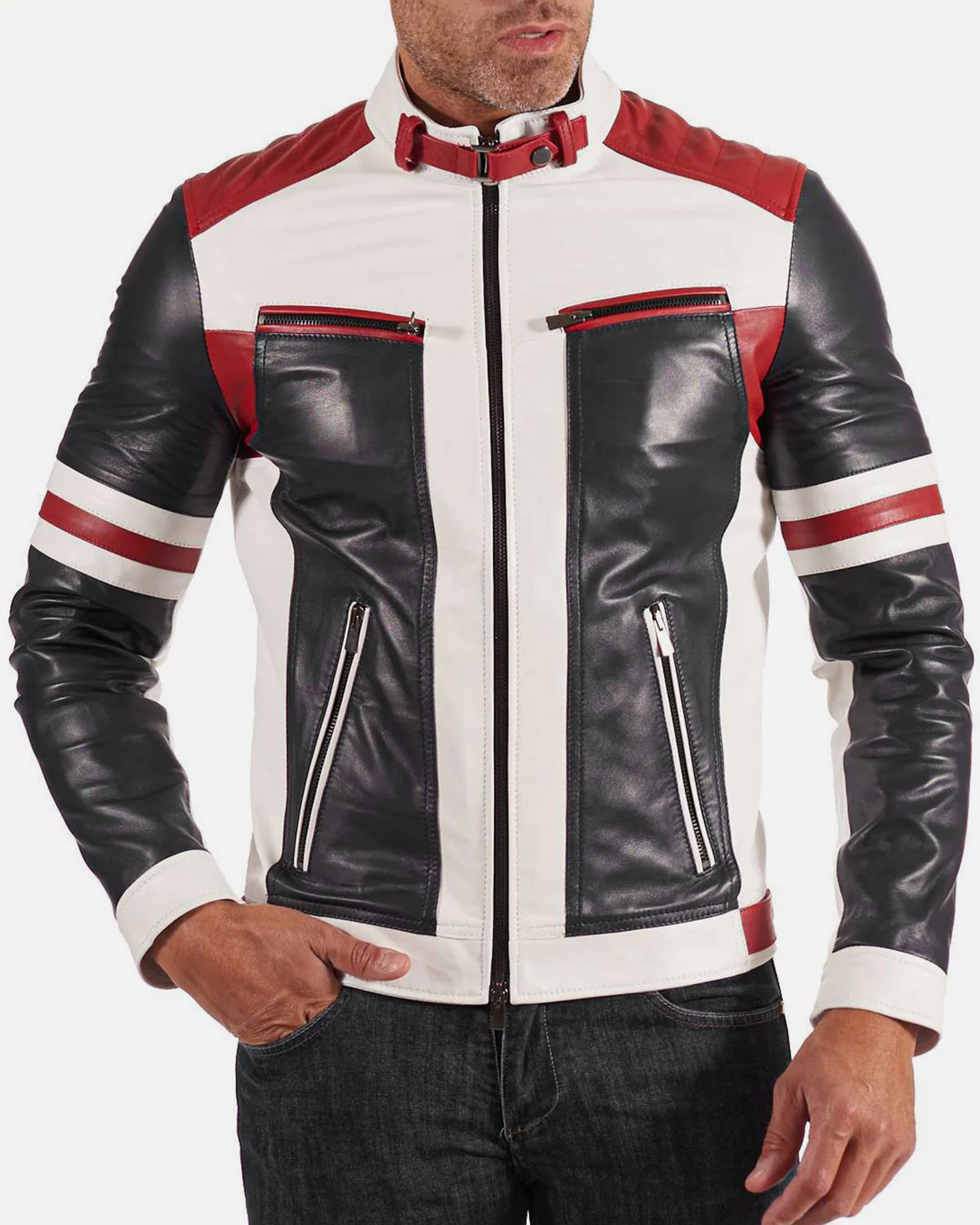 Mens Multi Color Biker Leather Jacket
