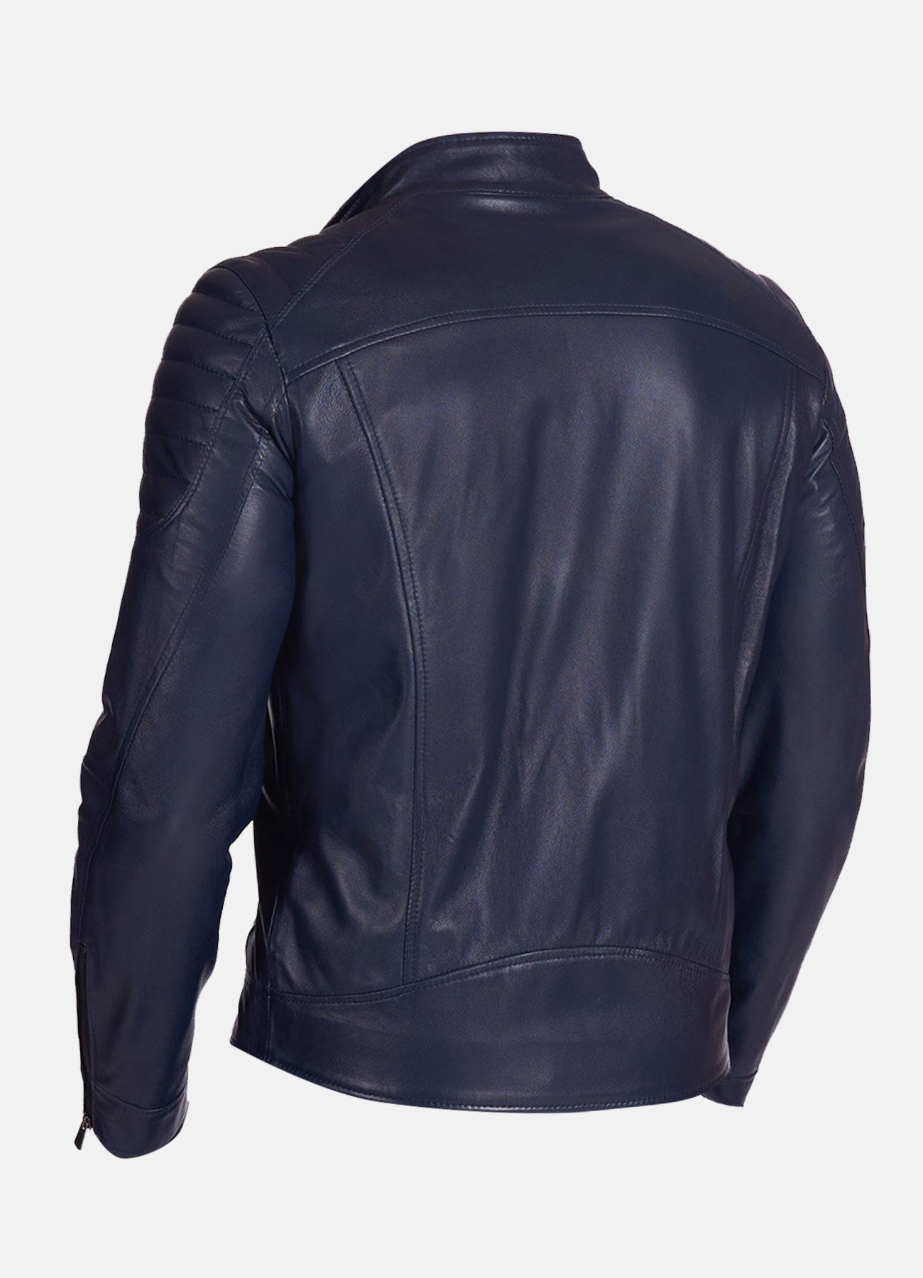 Mens Padded Shoulder Blue Biker Leather Jacket
