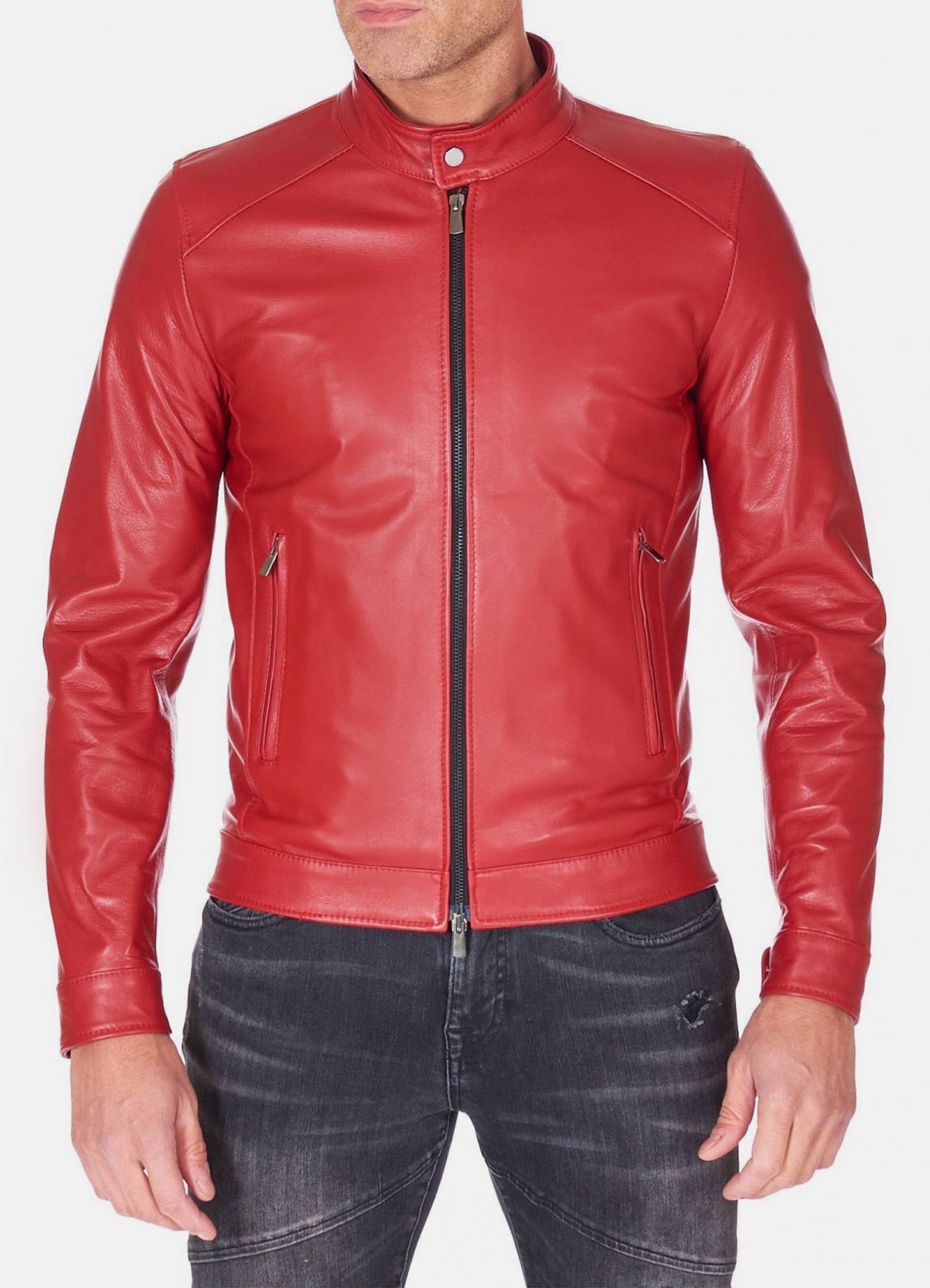 Mens Premium Red Biker Leather Jacket