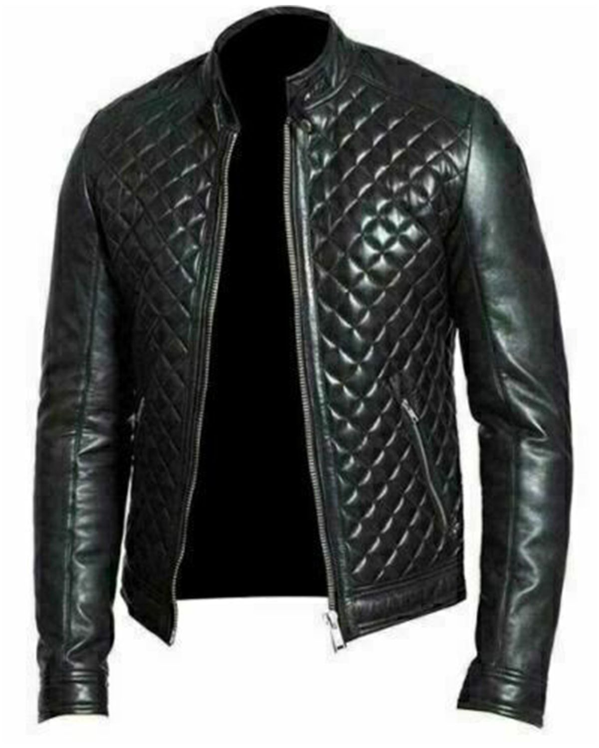 Men's Quilted Black Cafe Racer Real Sheepskin Leather Jacket