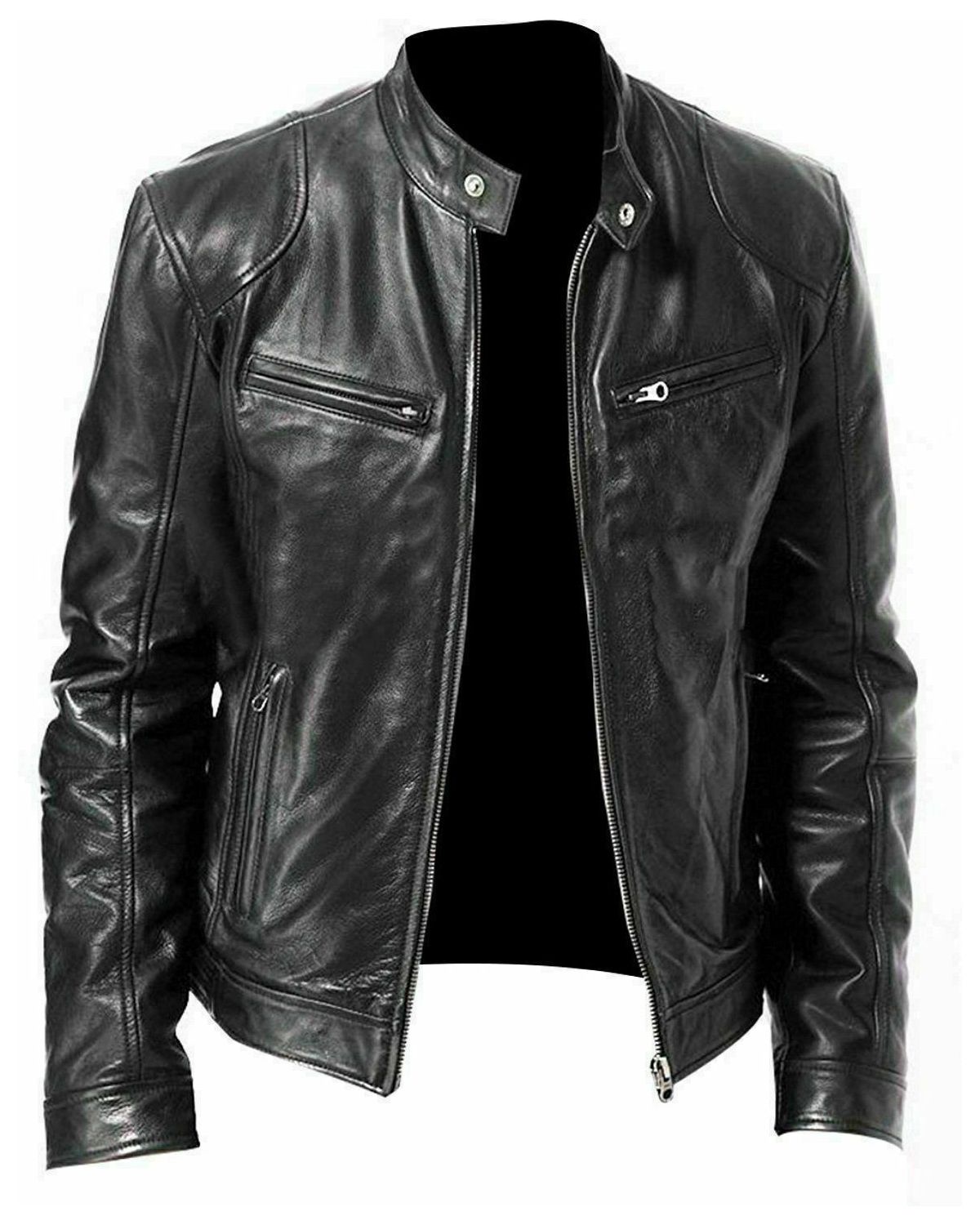 Designed with a round button collar and adjustable flap snap buttons on both sides, this Café Racer Jacket embodies the essence of classic coolness and versatility. It's the perfect choice for those who appreciate both style and functionality in their wardrobe.