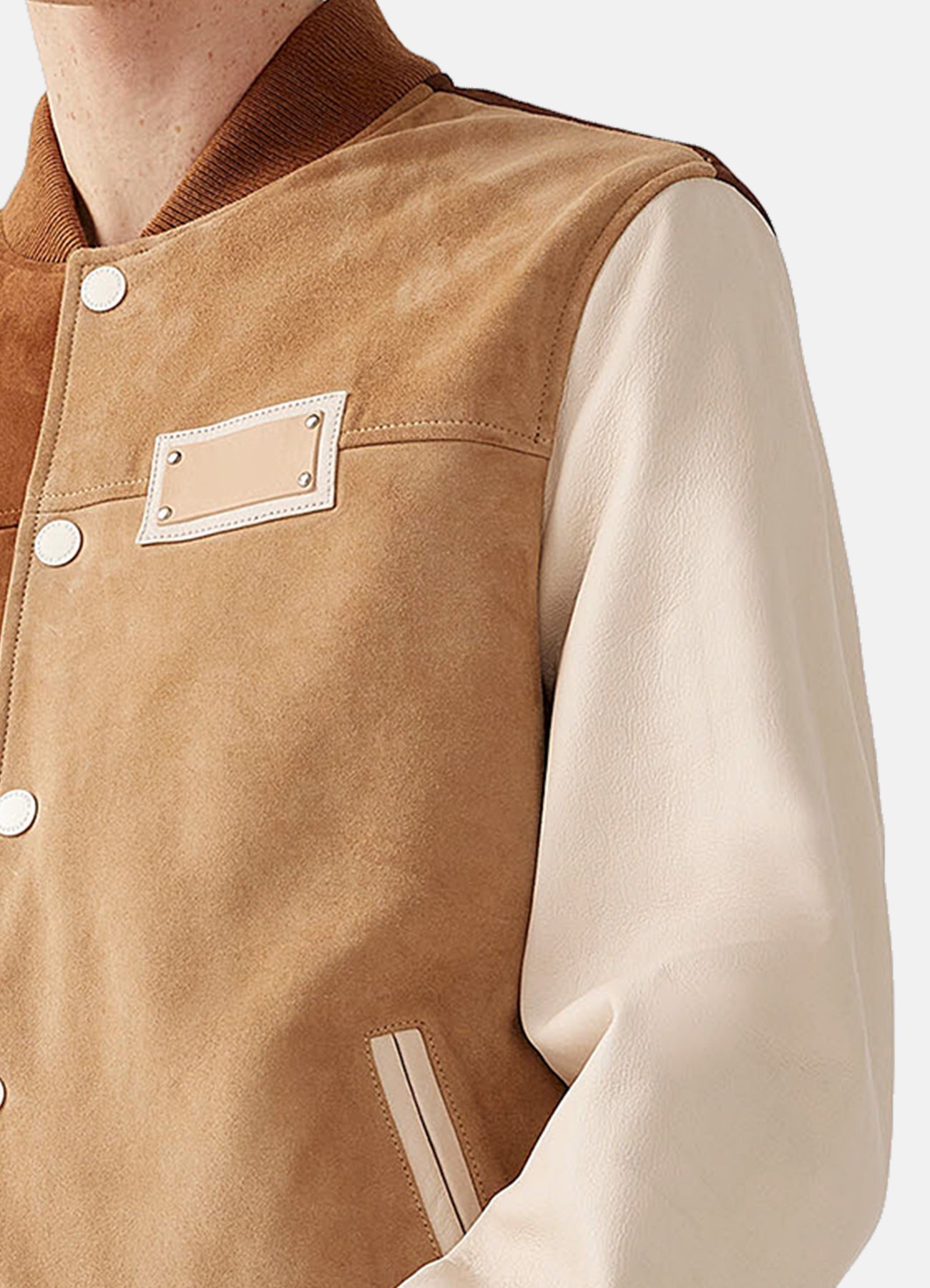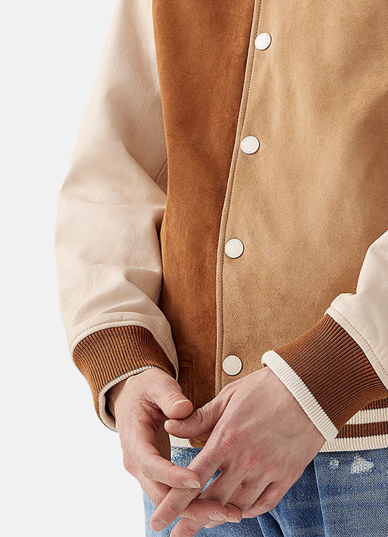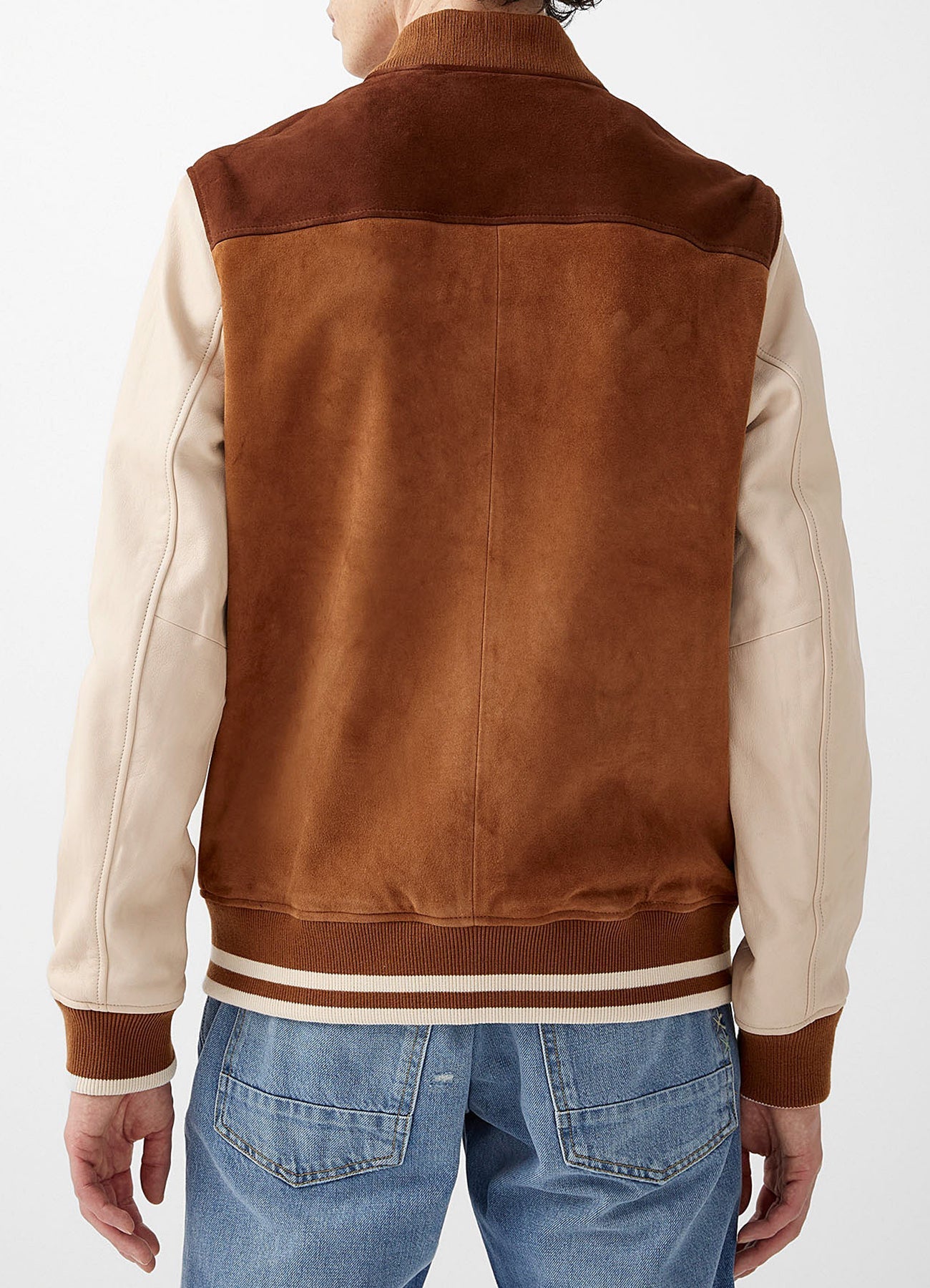 Mens Tan and Beige Suede Varsity Jacket
