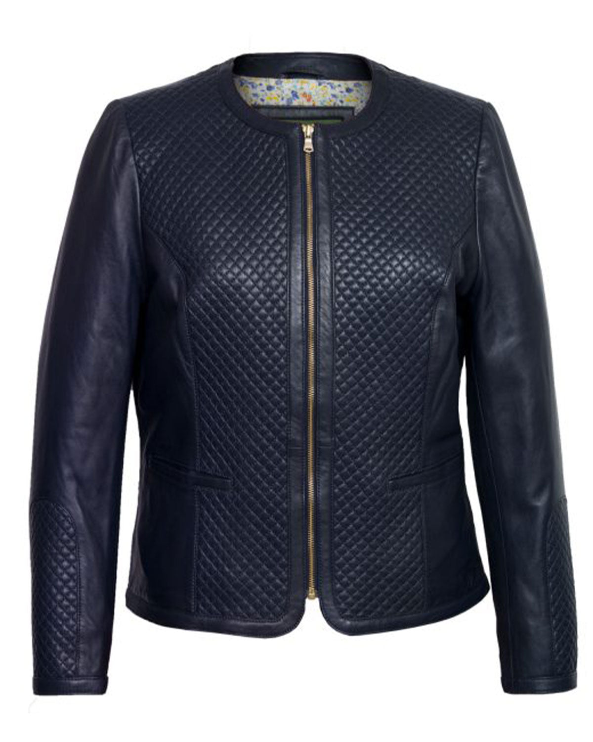 Two easy-to-access front pockets provide practicality, completed by an inside zip pocket for added convenience. With a comfortable fit and available in all sizes ranging from S to 3XL, this women navy quilted leather jacket is designed to offer both style and ease for a wide range of preferences and sizes.