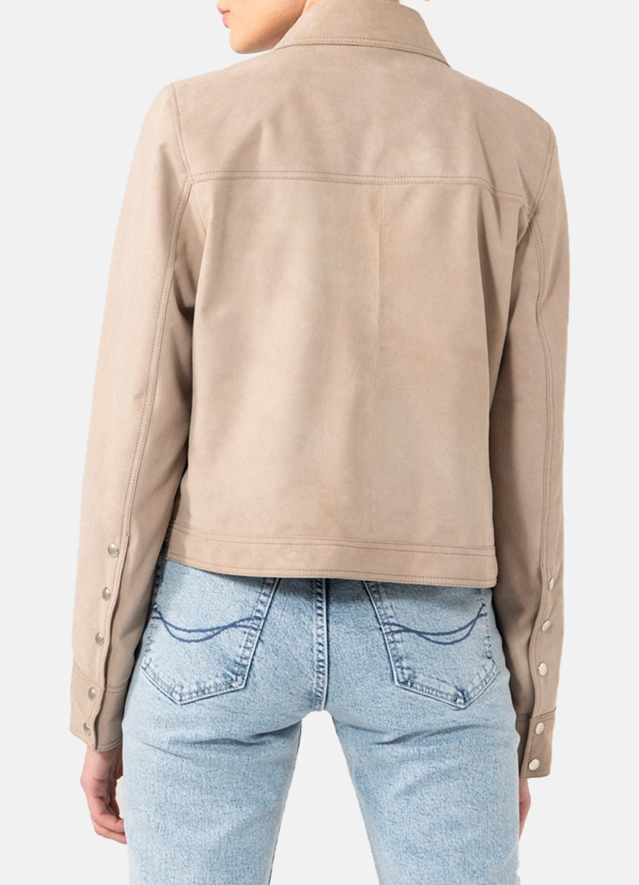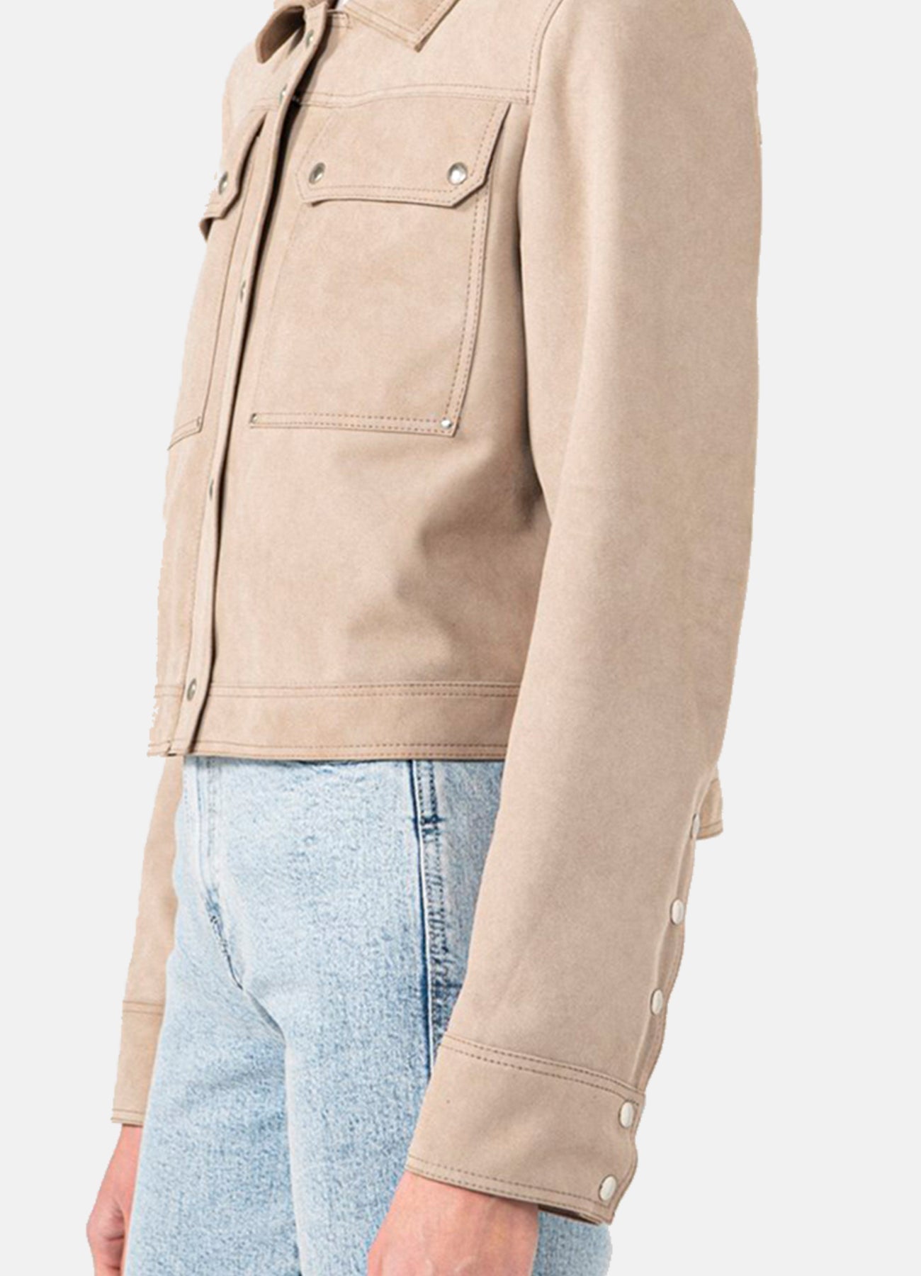 Womens Beige Denim Style Suede Leather Jacket