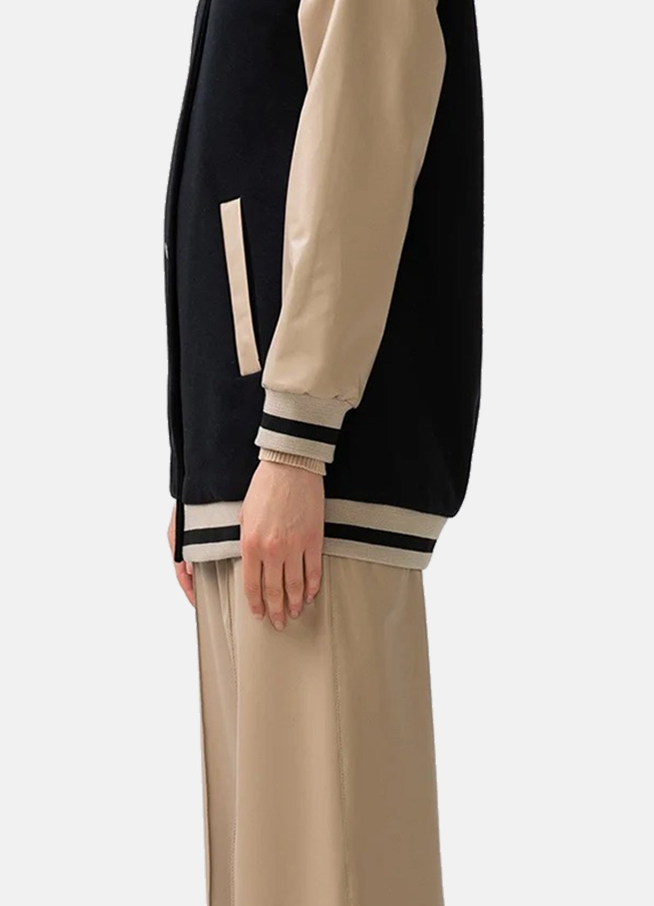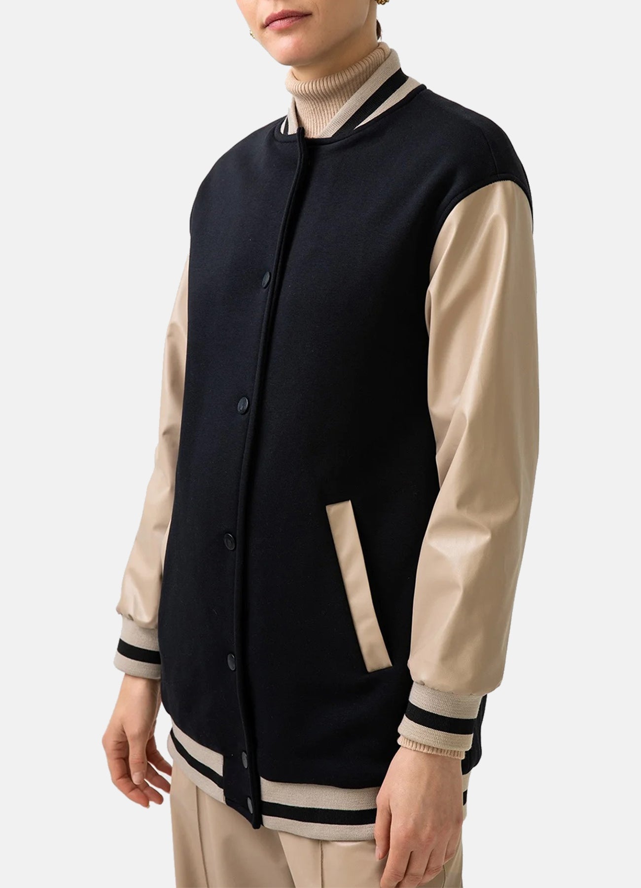 Womens Black and Beige Varsity Jacket