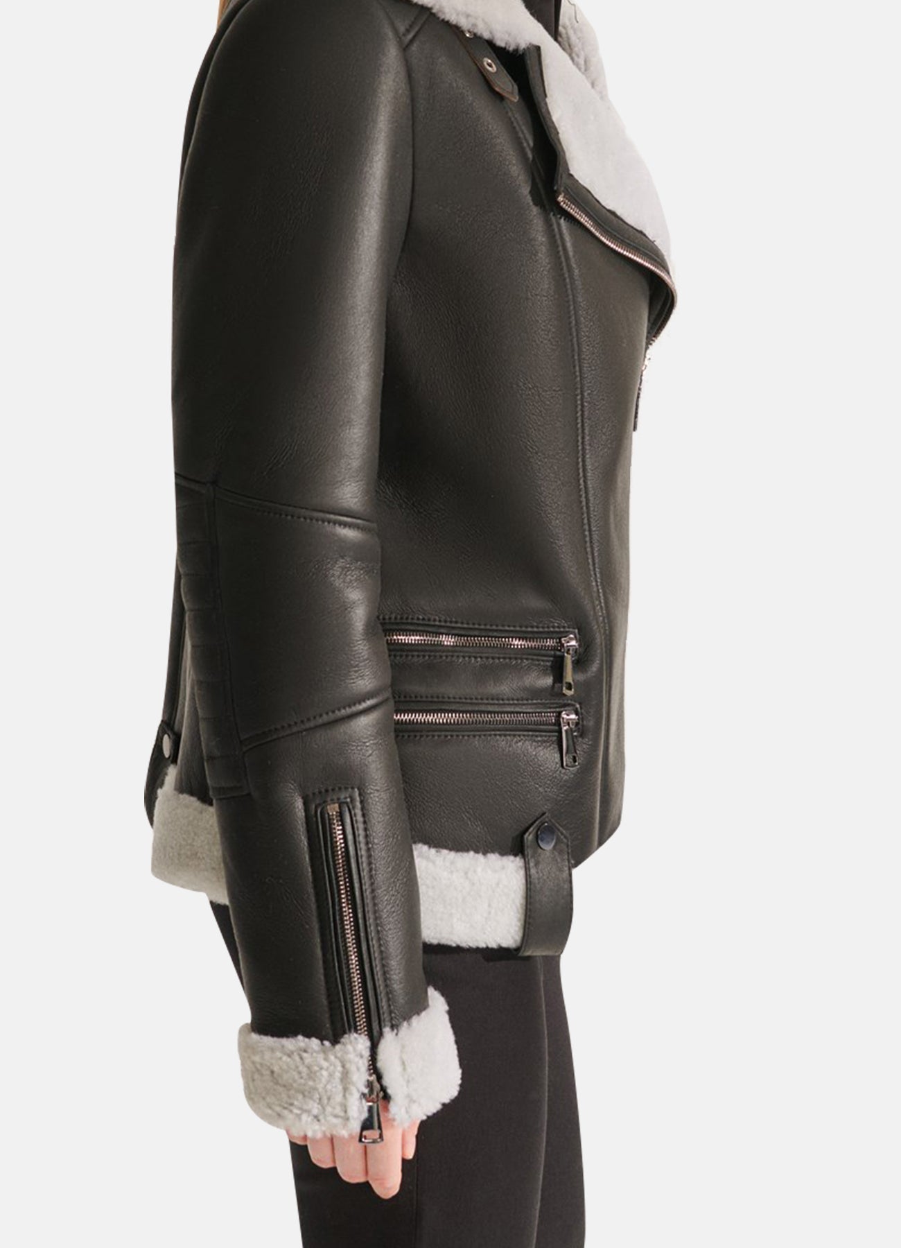 Womens Black Sport Shearling Leather Jacket