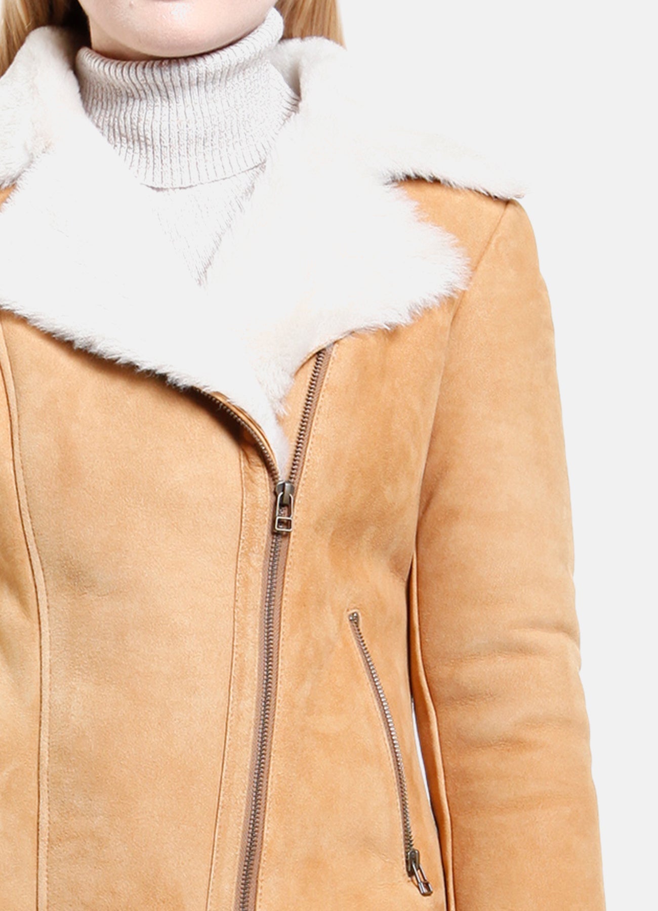 Womens Classic Tan Shearling Leather Jacket