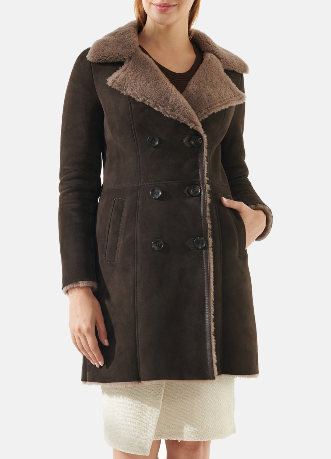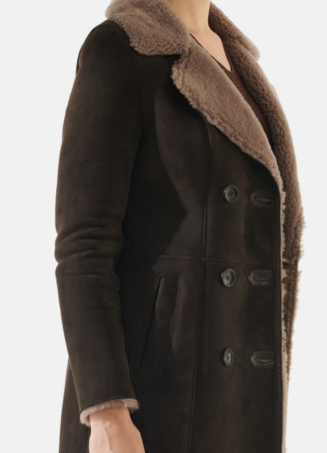 Womens Dark Brown Shearling Leather Coat