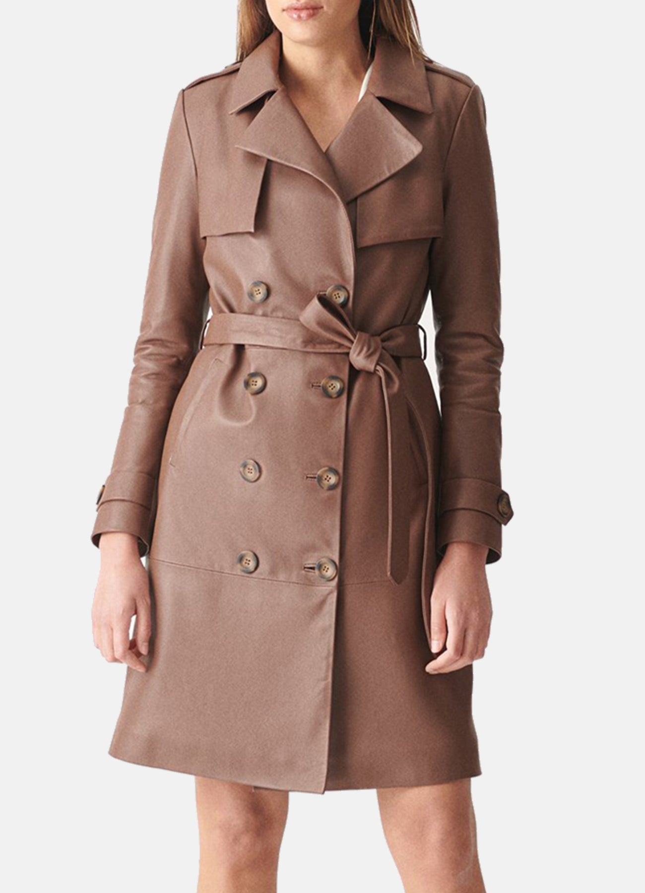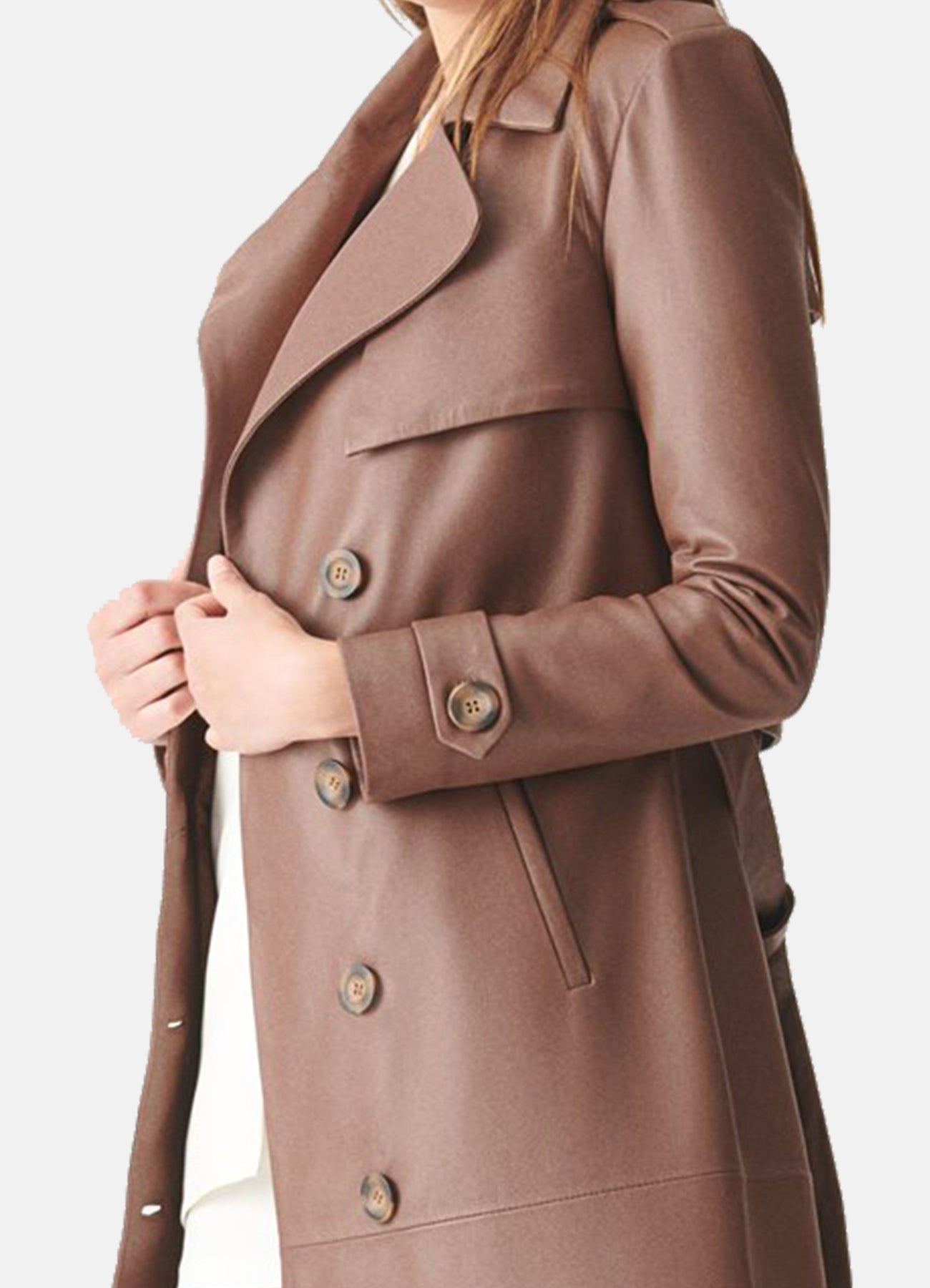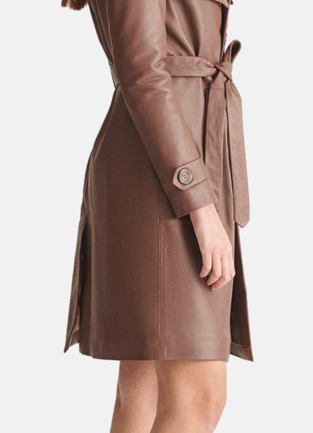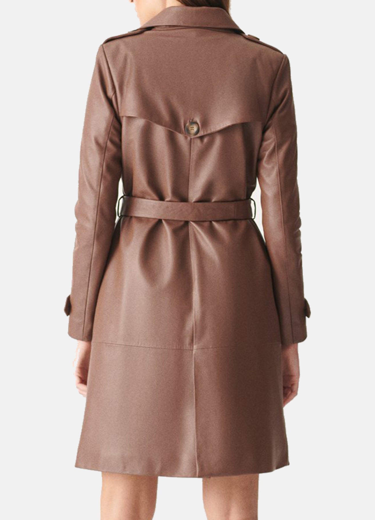 Womens Modern Brown Trench Leather Coat